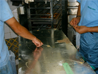コールドテーブルの天板の裏は、ほとんどがゴキブリの巣になっています。天板は剥がして内部に施工します。