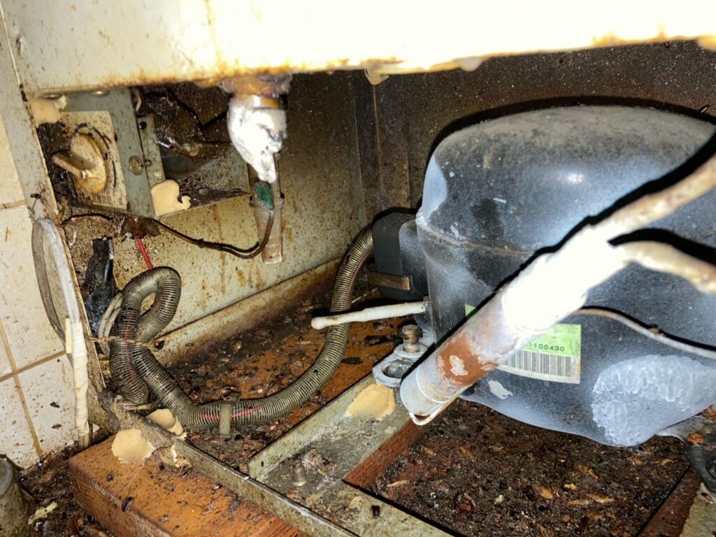 アイスストッカーに… 施工員ブログ 2022.12.21 急激に寒さが増した今日この頃ですが、暖かい屋内にいるゴキブリはお構いなしです。今回お伺いしたお店ではアイスストッカーのモーターに生息しておりました。 アイスストッカーは床面のすぐ上に暖かいモーターがあり、最もゴキブリがひそみやすい場所の一つに挙げられます。 低い、目線から外れやすい部分に繁殖する為、よく目につくなと思った時には大量に生息している事も。 皆様の周りでは如何でしょうか?ゴキブリが目につき始めていませんか?