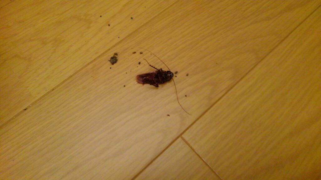 クロゴキブリが引戸収納に住み着いたと考えられます。