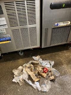 コールドテーブル下のゴミの中ににゴキブリの生息がありました。