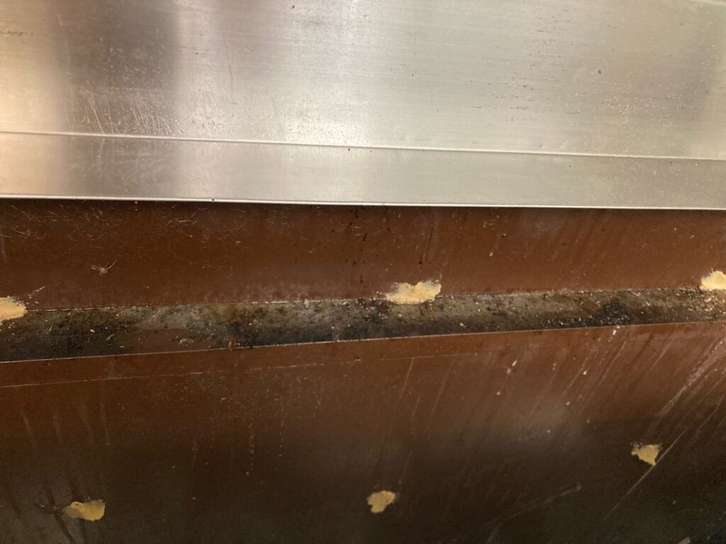 什器の裏に 施工員ブログ 2022.05.02 大型連休に突入です。皆様は如何お過ごしでしょうか。 さて、今回お伺いしたお店では、コールドテーブルの裏にかなりの生息がありました。動かして裏を覗けば…壁は浮いて空洞になっておりそこが巣に、下には多くのゴミがありそこも巣に…普段中々動かせない什器の裏や下には、この様にゴキブリの絶好の住処になってしまっていることも多いのです。 節目節目にはしっかり動かしたりして掃除でもしてみては如何ですか?