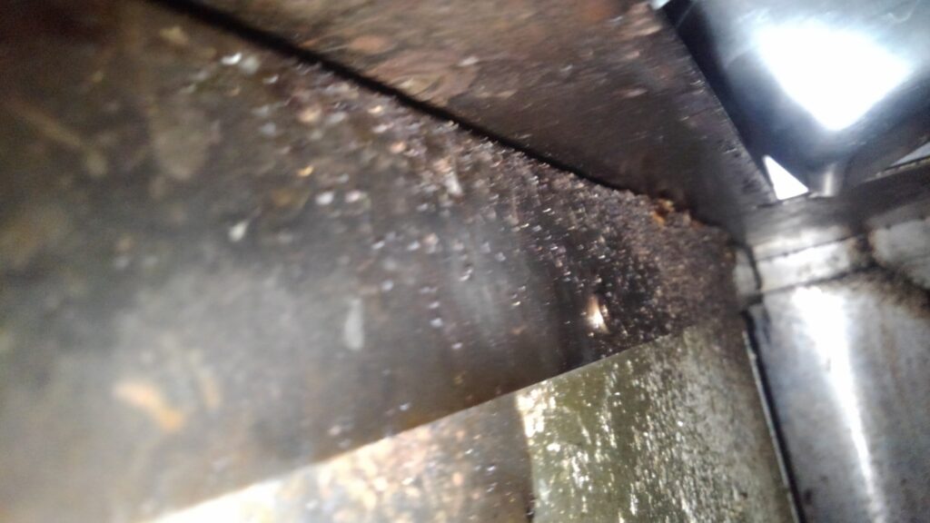 横から覗いて見ると角の部分に糞がこびりついて、隙間に生息が見られます。