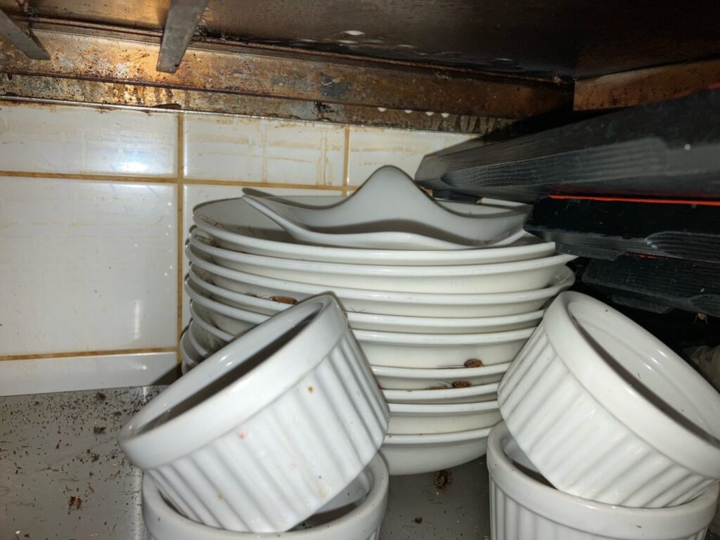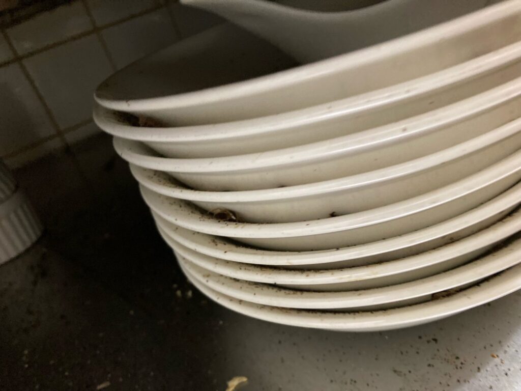使用していない食器にも 施工員ブログ 2022.11.29 朝晩冷え込み、冬の訪れも感じるようになってきた今日この頃ですが、屋内に住み着くチャバネゴキブリは平常運転です。 それでも基本的には暖かいところに集まってきてはいますが、厨房内自体が暖かく各所で生息が見られることもしばしば。 写真のようにずっと使っていなかった食器の間にうじゃうじゃしてるなんてことも。 年末も近づいてきましたので、これを機会にいらないものを処分して、少しでもゴキブリの住み着きにくい環境を作ってみては如何でしょうか?