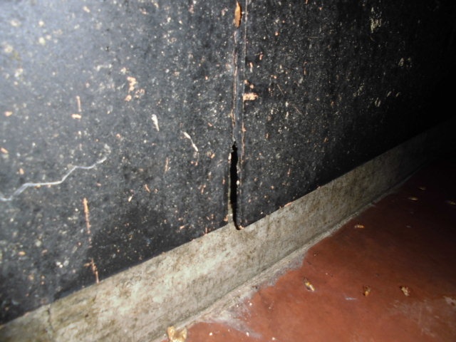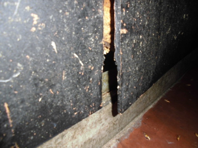 壁空洞 施工員ブログ 2020.06.23 インド料理店の現場です。カウンター厨房内の壁にご覧の様に隙間がありゴキブリが出入りしていました。壁内部の空洞が巣になっている様です。カウンター厨房内にはナンを焼く窯があり香ばしい匂いもするのでゴキブリにとっては、過ごし易い環境です。壁を少しめくって薬剤を施工しました。 FCCでは、ゴキブリの巣を特定しダイレクトに薬剤を施工する事により完全駆除を目指しております。