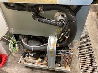 写真は、コールドテーブルのモーターを開けた映像と裏の壁面となります。