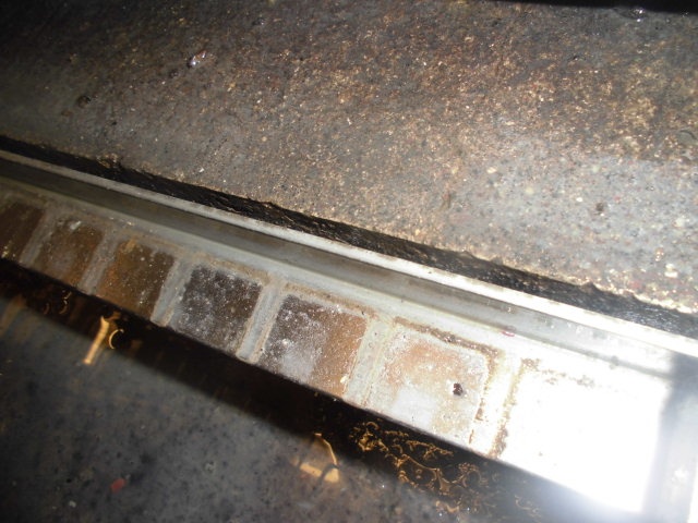 更に付近を念入りに調整すると、ご覧の通りの排水溝の脇の床の部分にわずかな隙間がありました。