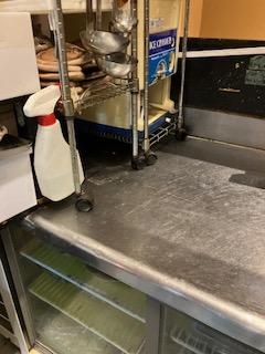コールドテーブル上に棚があり、周辺にゴキブリの少数の生息が見られました。