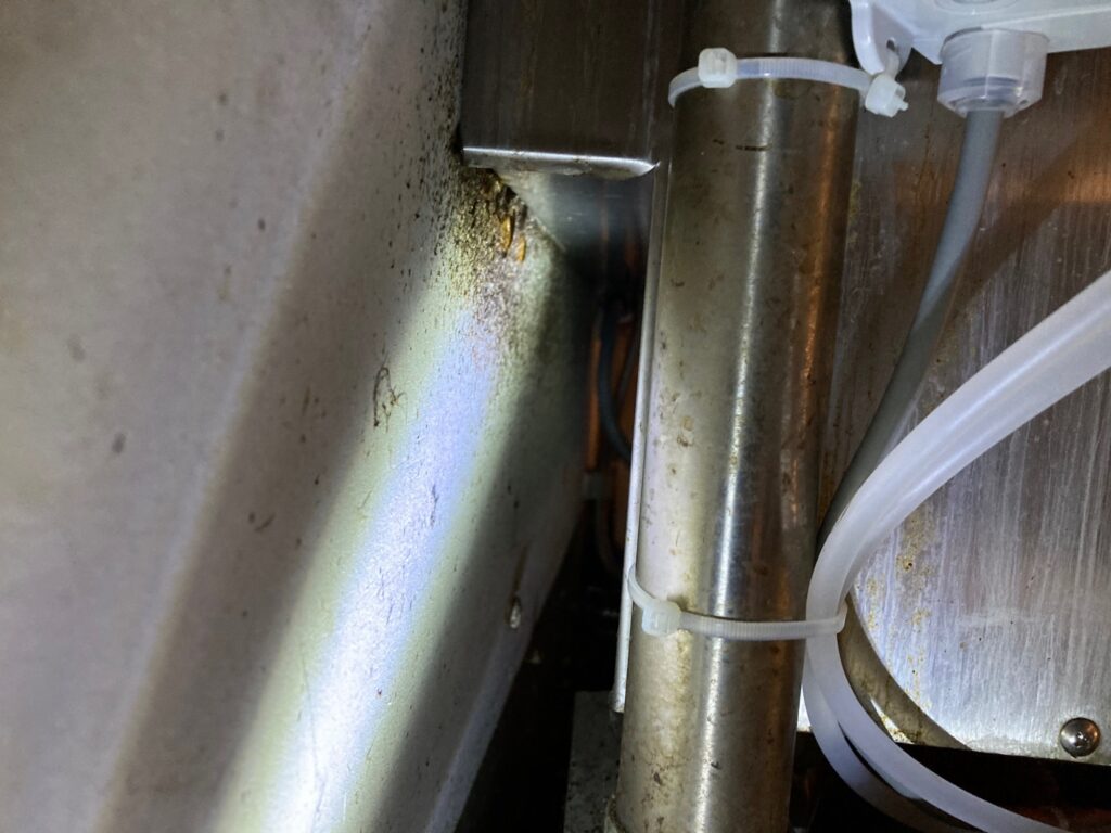 物陰に潜む… 施工員ブログ 2020.10.20 漸く暑さもおさまり、肌寒い季節になりましたね。 寒くなってくるとゴキブリは減る?いやいや、そんな事はありません。暖かい場所に潜み、春を待っているんです。 例えば、写真は洗浄機裏です。モーターの裏は常に暖かく、水分も豊富で好まれやすい場所の一つです。こうした場所に潜んで外に出てくる頻度が下がるから減ったように感じるのです。 これから冬に向けて暖かい場所に生息が集中すると言う事は駆除に1番適した季節とも言えるかもしれません。これを機に徹底駆除してみませんか?