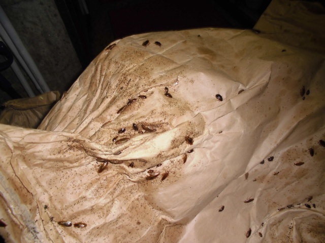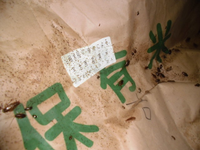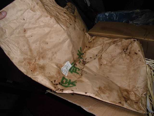 ゴミ置き場周辺に米の袋が置いてあり、ゴキブリの巣になっていました。