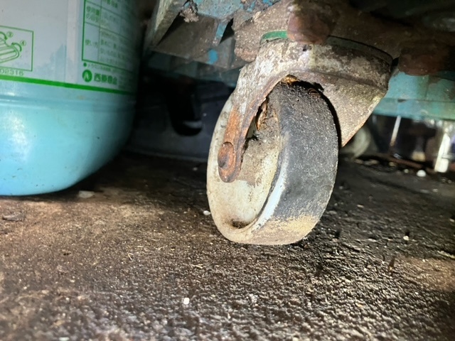 台の下のタイヤにも。
