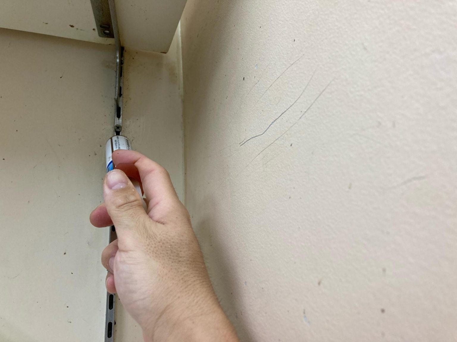 例えば吊り棚の段差を調節する金具の隙間、