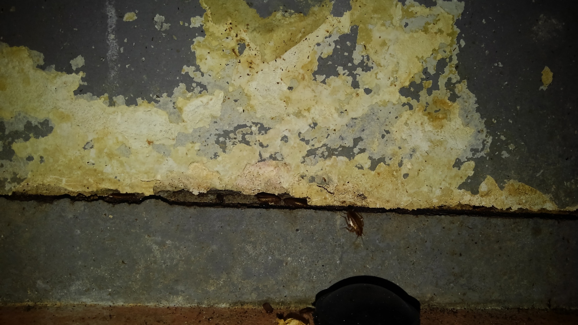 隙間に潜む… 施工員ブログ 2020.09.29 日が出ればまだまだ暖かく、日が陰れれば肌寒い。いやな気候が続きますね。体調管理には気を付けねば…そんな気候の中でもゴキブリはお構いなしに出没します。 今回お伺いしたお店では慢性的に壁の中に生息がありました。写真は什器下を覗いた写真で、壁の隙間にびっしり入り込んでおり、そこから壁の中にまで生息がありました。 普段覗く事のない場所の奥の更に隙間、人の目につかず絶好の隠れ家なのです。こうした棲み家を一つ一つ見つけてしっかり処置する事により根絶が可能になるのです。