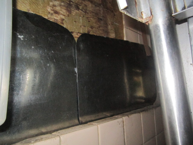 こういった大きな箇所は鉄板を用います。その際水気を防ぐ為にシリコンを周りに塗り、さらに万が一触って指等を切らない様に鉄板の角などは全て丸みを帯びる様にカットします。これで長く維持出来る上に安全です。