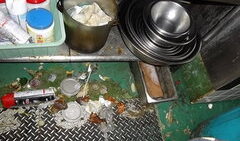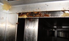 池袋の居酒屋さんの新規施工に行ってきました。厨房に入るなりゴキブリ特有のフェロモン臭がただよっていました。什器下のゴミの中や隙間にかなりの量の生息がありました。中でも調理台の隙間にご覧の様に大量の生息がありました。隙間からゴキブリの触覚がピ...
