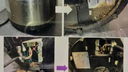 今回は、FCCが頭を悩ませる、「角に設置された洗浄機」です。何故、頭を悩ませるのか?1.角なので、厨房を掃除したとき、水に流されてゴミが溜まりやすい。その上、洗浄機の下には配管が沢山通っていて取り出しづらい。2.洗浄機周りなので、水気が多分...