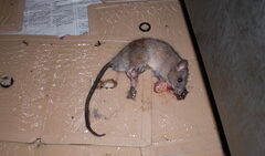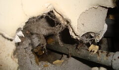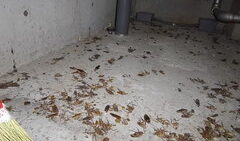 結婚式場兼ホテルの施工での駆除の様子です。新規施工当時に、ゴキブリの生息があった数箇所ある厨房には、いっさい生息はありませんでしたが、パントリーの床のめくれている部分に数匹の生息がありました。パントリーには、宴会用のビールがケースで大量に搬...