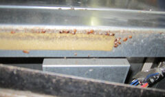 魚料理店の施工です。早朝からの作業のため、前日に鍵を預かりに伺いました。状況を確認します。厨房内のコールドテーブルと、その前にある電子ジャーの周辺でゴキブリを見かけるとのことです。明日は特に、この場所に注意です。翌日の施工日です。前日に預か...