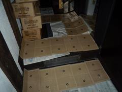 床面にびっしりと粘着捕獲マットを設置していきます。