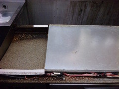 前に引き出して横から覗くとヒーター下の隙間に生息しています。