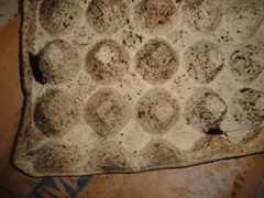 このたまごの容器は、ゴキブリが好む紙容器で糞だらけになっていました。