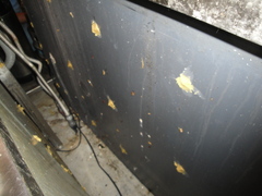 壁面に焼肉のタレがこぼれた跡があり、こびり付いていました。