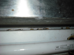 確認してみると手元を照らす蛍光灯の隙間にゴキブリ発見です。