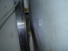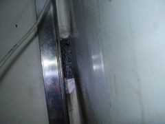 車に残っている材料で何とか穴を塞ぎます。金網とパテで無事防鼠完了。