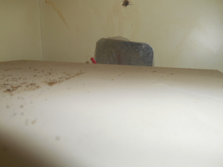 進入路は、大型の据え置きの冷蔵庫脇の壁の上部に穴が空いていまして、