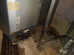 普段の清掃で水を流し冷蔵庫下の僅かな隙間にゴミが溜まってしまった様です。