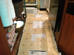 その後、厨房と客席を粘着マットを引きましたが捕獲がなく退店しました。
