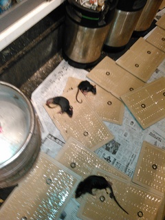 数時間のネズミ粘着マット設置で16匹の捕獲です。