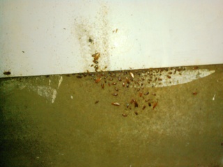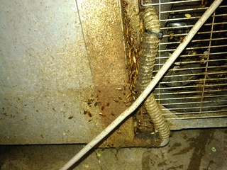 こちらは、コールドテーブル、壁面ともに糞を剥がして薬剤を施工しています。