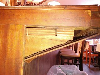 写真をご覧の通り、カウンター脇に穴が空いており風が抜けておりました。
