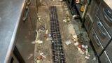 冷蔵庫など什器の下に溜まってしまっているゴミを取り除く作業ですが、
