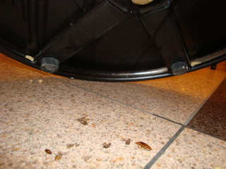 熱源付近に居ないとなると、ここが怪しいと思いテーブルを引っくり返してみると写真の通り、ゴキブリ発見!