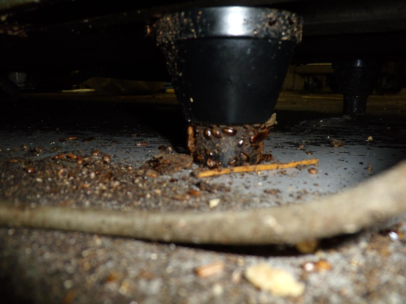 写真の映像は、コールドテーブルの脚なのですが、かなりの数が生息しています。この店舗も、床はドライでパン屑が落ちていて、エサとなっていました。そして、もうひとつの点から考えるとベーカー等が温かいため、厨房内も温かく生息するには環境が整ってしまっているのが原因と考えられます。