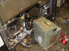 このお店の洗浄機は、後者のブースター無しです。このままですと奥の方までベイト剤が施工出来そうもないので取り外しても問題なさそうな機器をはずします。(写真下)