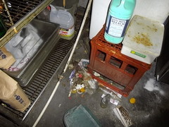 写真は什器下の配管裏のゴミを掻きだしたものです。