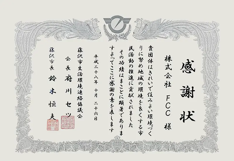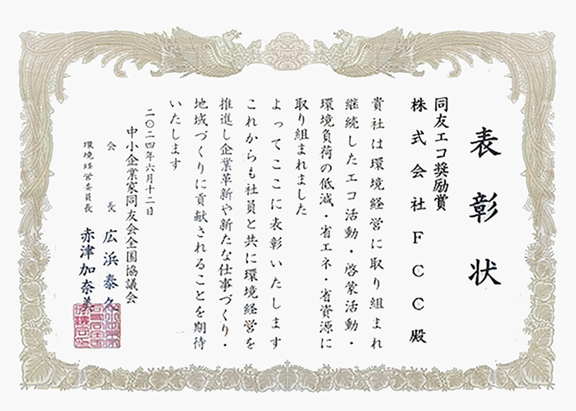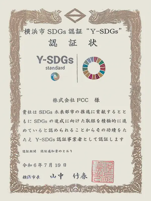 弊社は経営理念「地球にやさしく人にしあわせ」の基、環境に配慮し、関わる方たちのしあわせを目指した事業展開をしております。その中でこの度、横浜市SDGs認証制度「Y-SDGs」の認証を受けることができました。FCCはこれからも未来へつながる社会活動を続けて行きます。